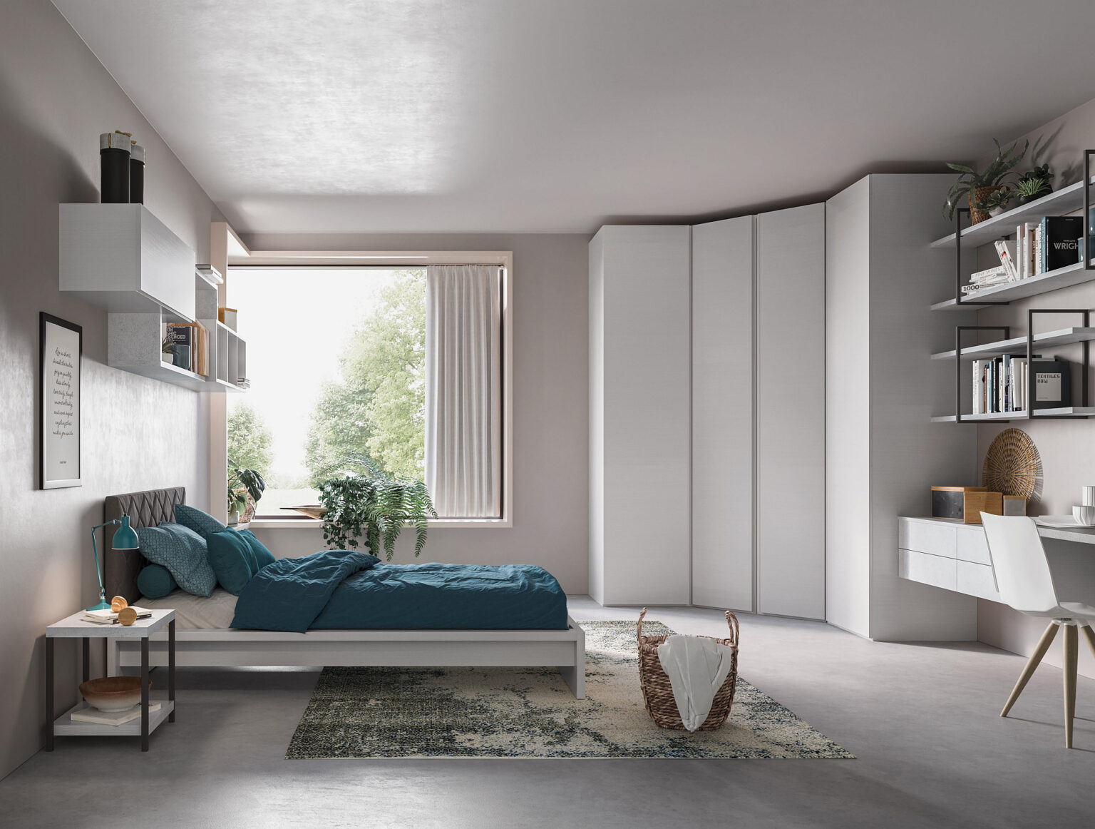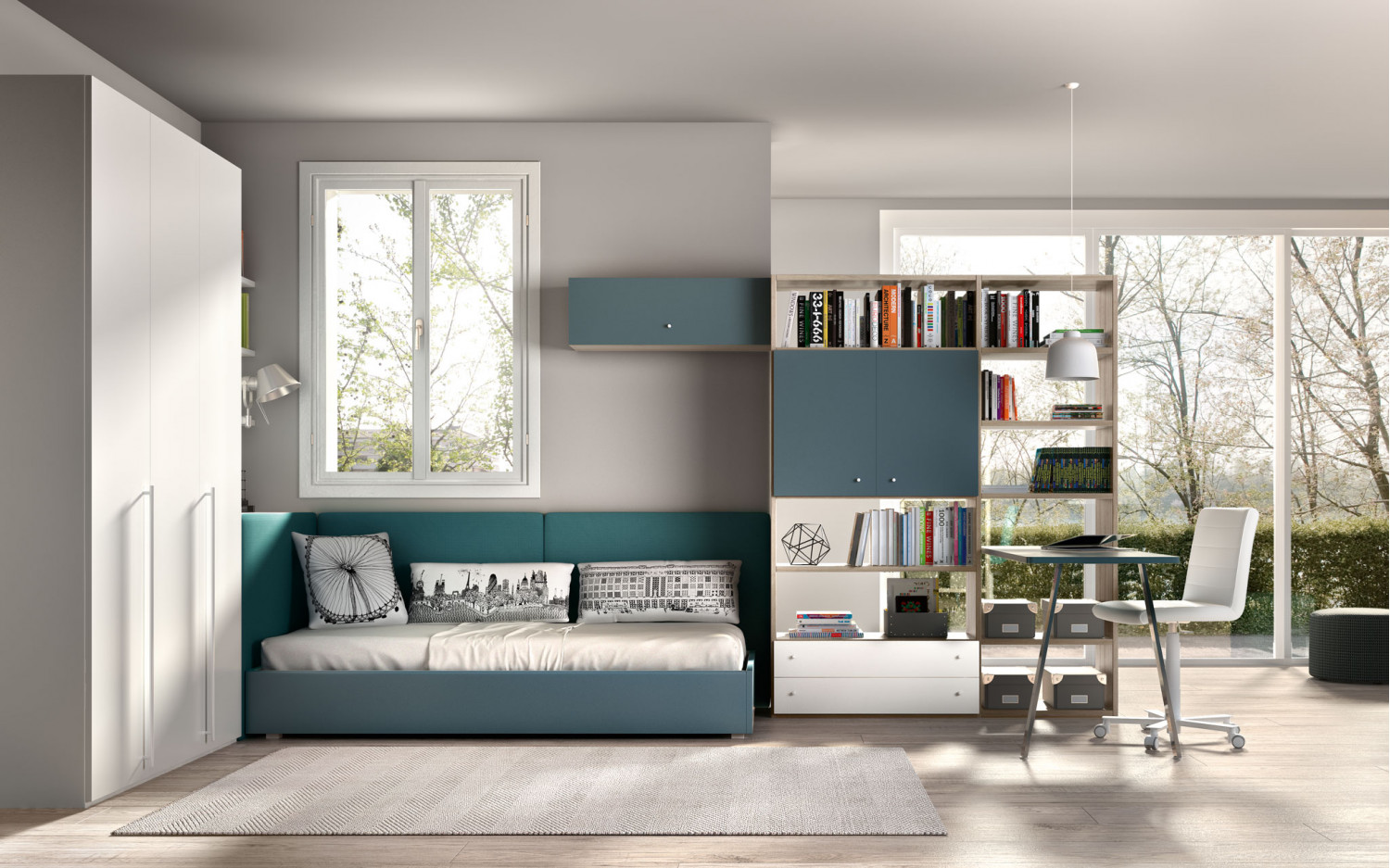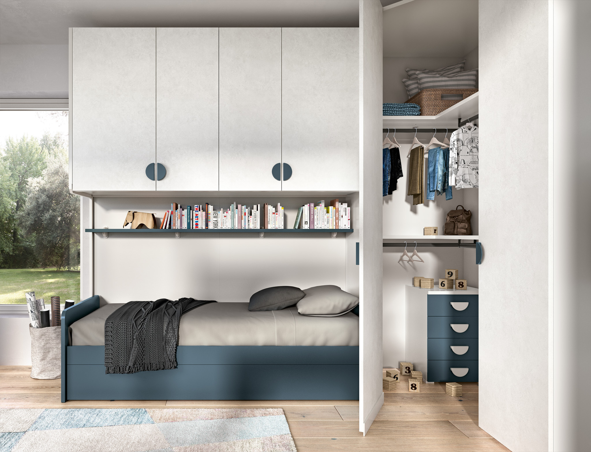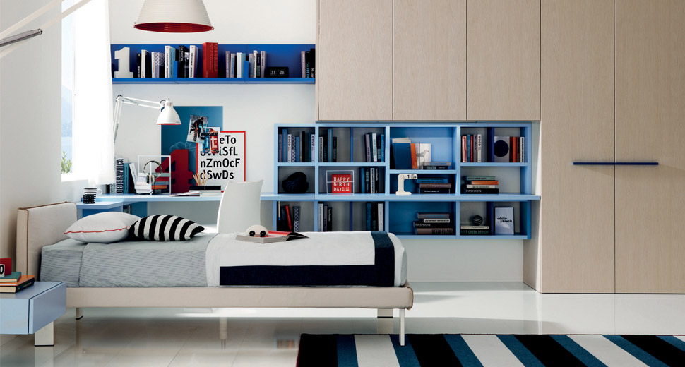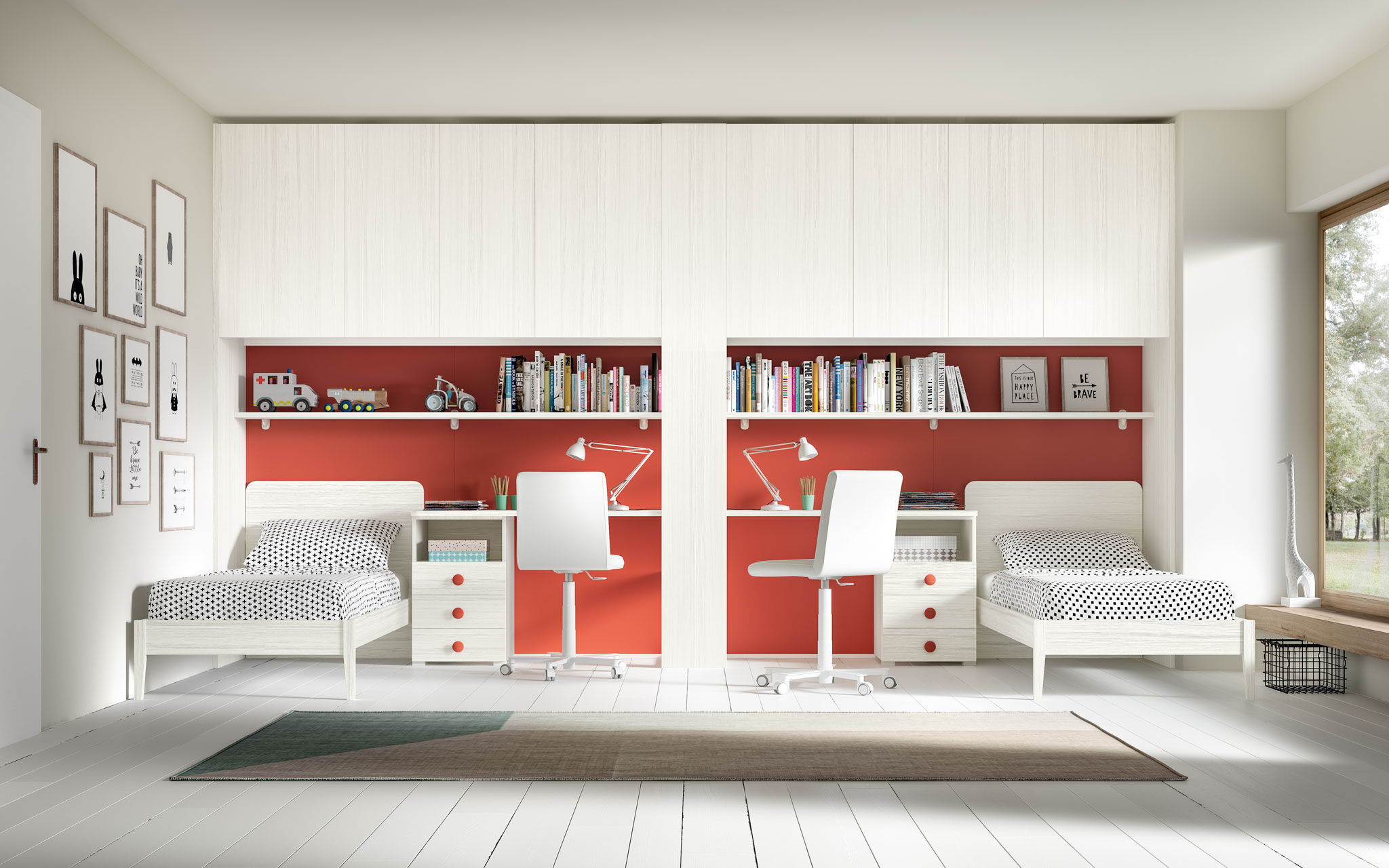 Progettiamo la naturale evoluzione della stanza che potrebbe crescere con loro, una scrivania con libreria per gli studi futuri, una piccola cabina-armadio dove gettare tutto quello che lascerebbero in mezzo alla stanza… noi ci pensiamo, lo proponiamo.