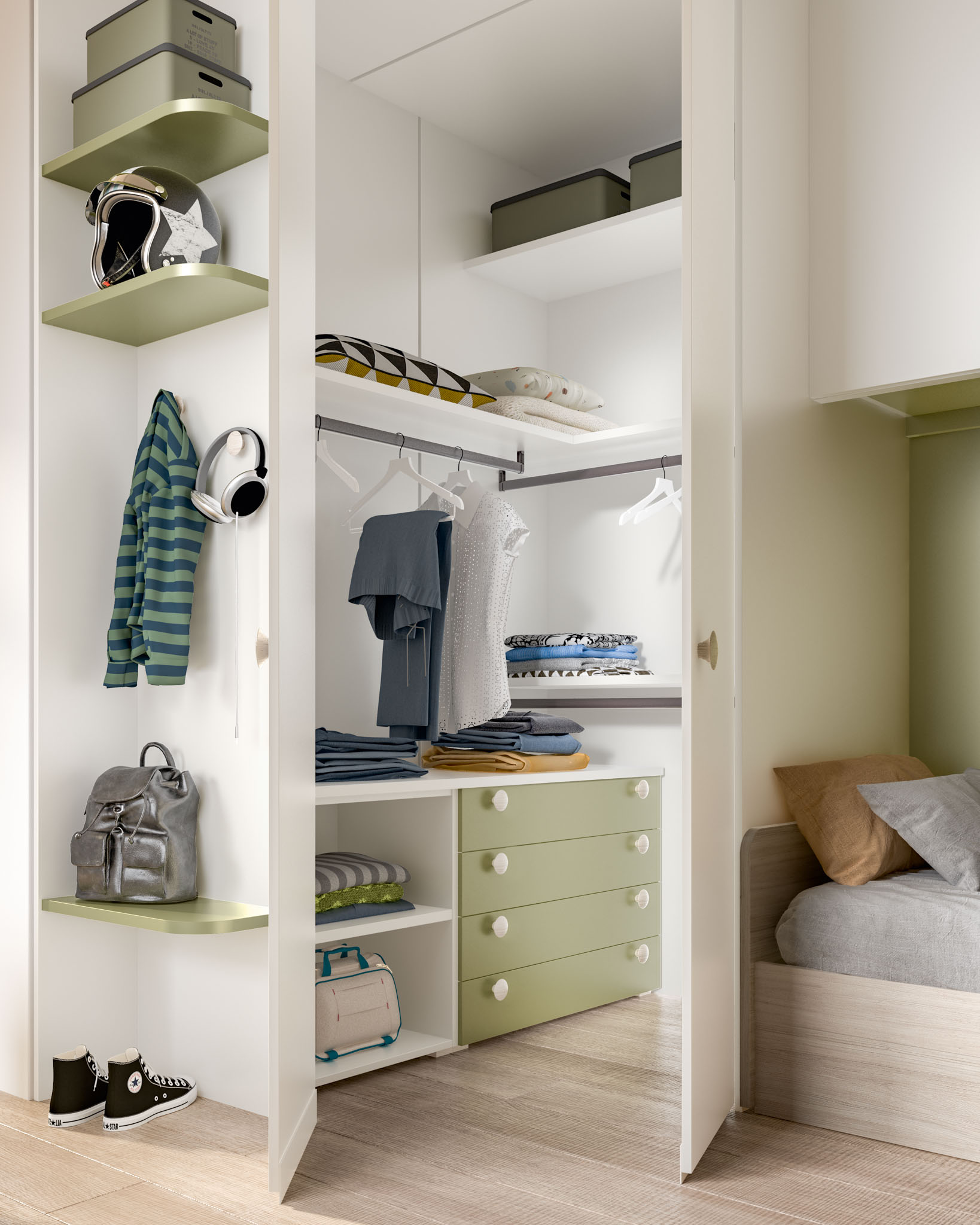 Progettiamo la naturale evoluzione della stanza che potrebbe crescere con loro, una scrivania con libreria per gli studi futuri, una piccola cabina-armadio dove gettare tutto quello che lascerebbero in mezzo alla stanza… noi ci pensiamo, lo proponiamo.